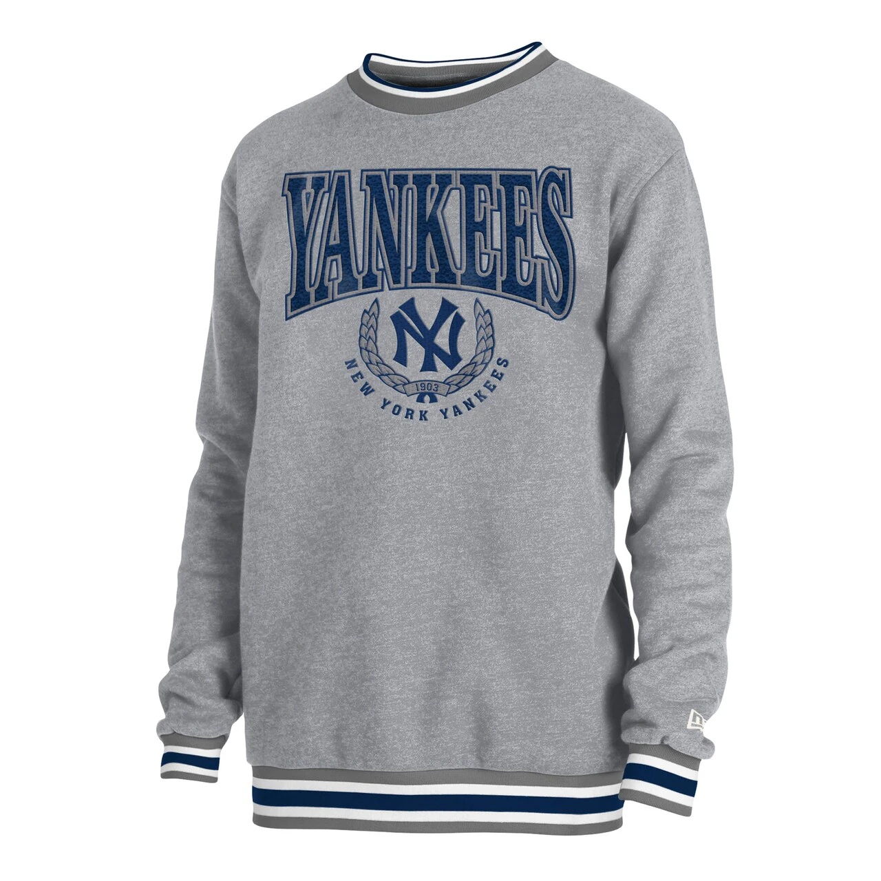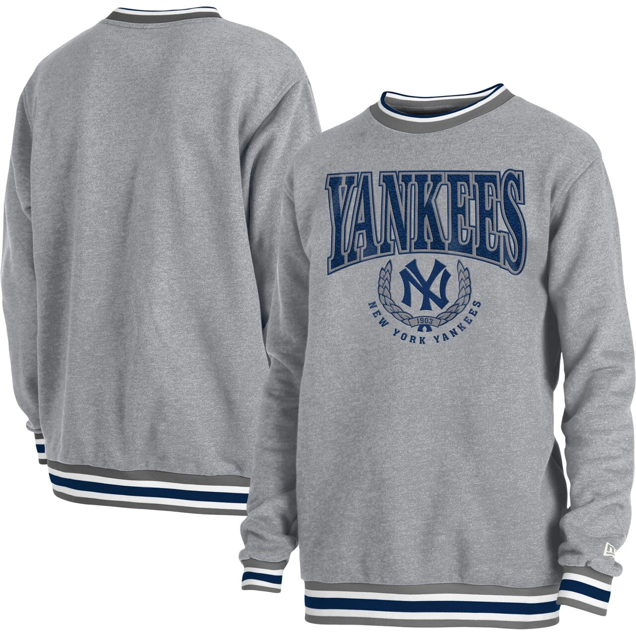 Give your New York Yankees fandom a collegiate look with this Throwback Classic pullover sweatshirt from New Era. It features vintage New York Yankees graphics on heathered fabric and traditional rib-knit striping in coordinating colors. Soft material also provides a comfy feel for comfortable wearing all day.
