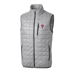 Men’s Philadelphia Phillies Cutter & Buck Gray Rainier Full-Zip Puffer Vest