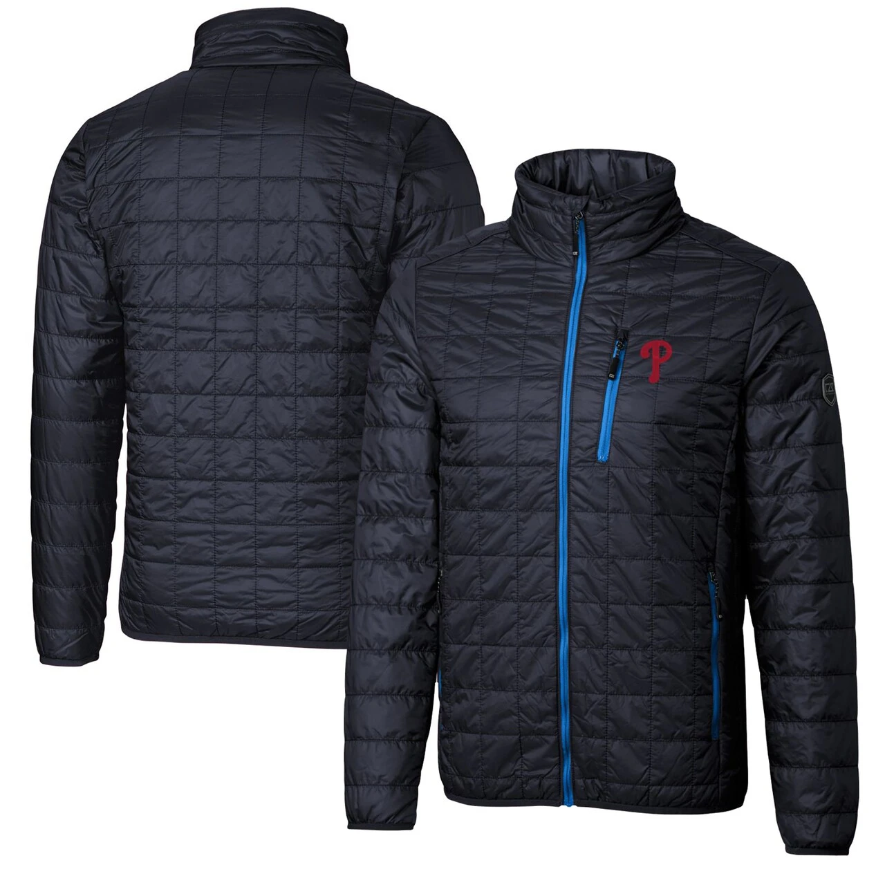 Men’s Philadelphia Phillies Cutter & Buck Navy Rainier Eco Insulated Full-Zip Puffer Jacket