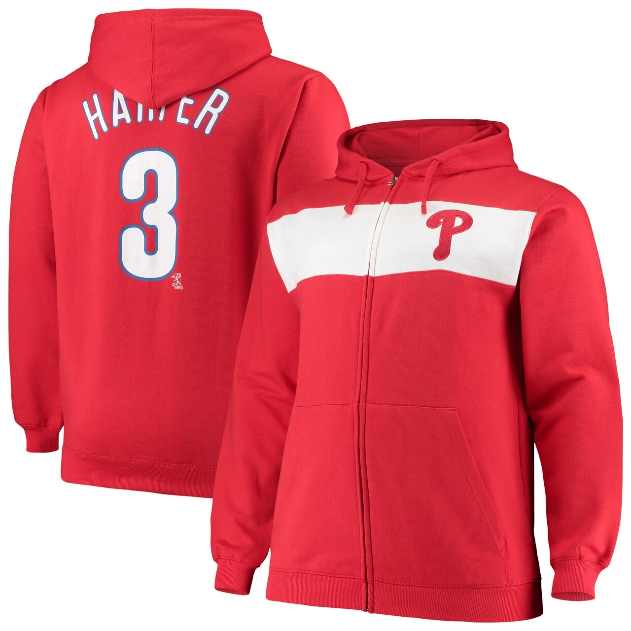Profile Men’s Philadelphia Phillies Bryce Harper Red/White Big & Tall Player Name & Number Full-Zip Hoodie